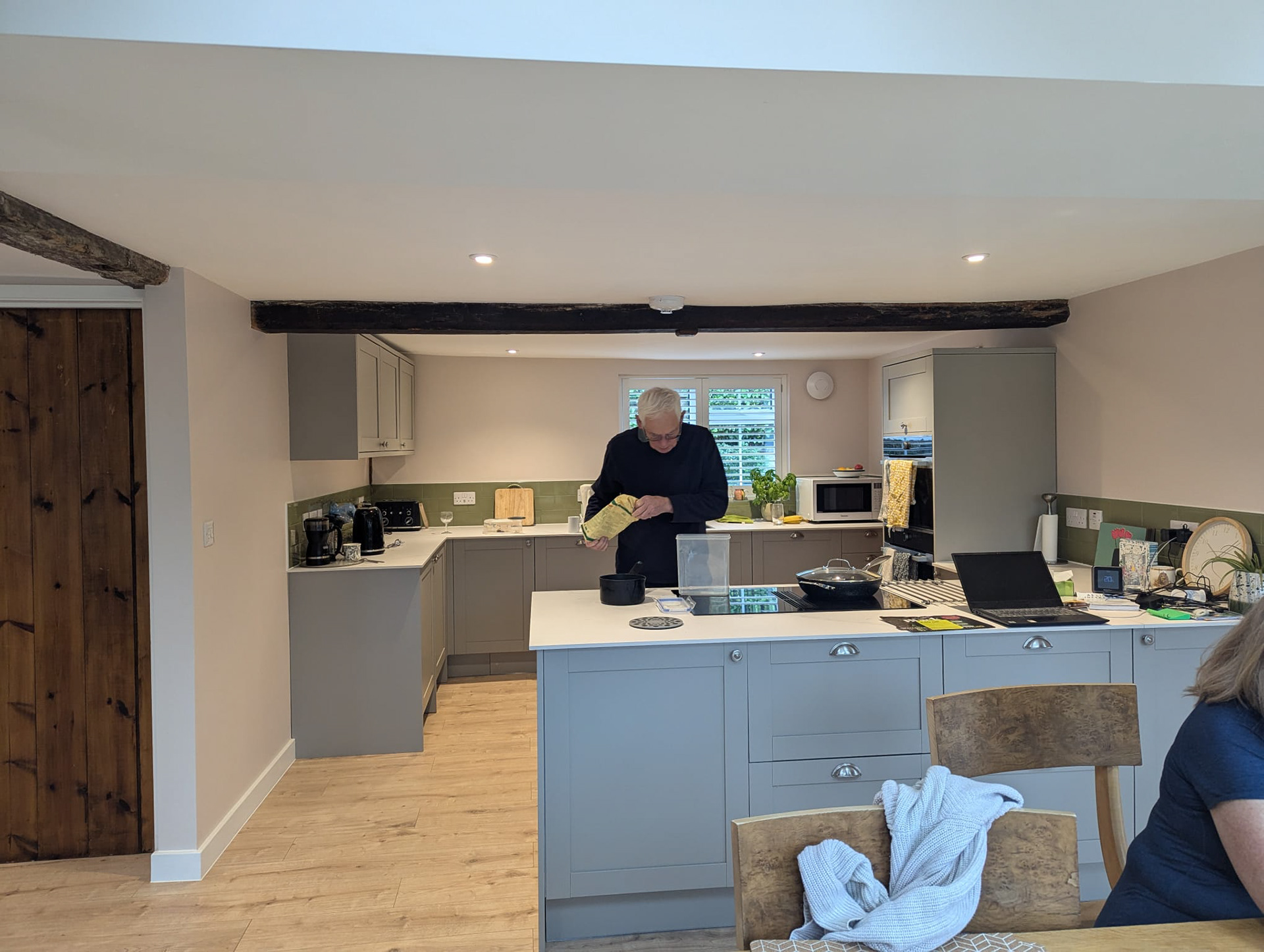 This cottage, set in a rural East Suffolk village underwent extensive renovation and extension. The single storey extension, expanding the full length of the rear of the cottage, enabled a larger open-plan family space to be created. This space allows a smooth flow between areas, especially when entertaining wider family and friends. The living and dining spaces now open onto the patio at the rear of the property, revealing beautiful views of the landscaped garden.