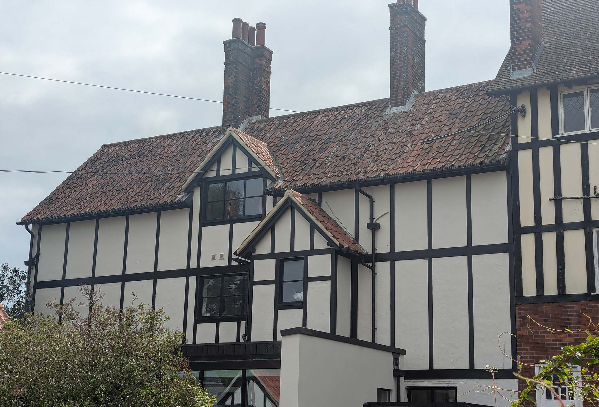 It was originally designed in a Faux Tudor half-timbered style. Extensive dialogue and liaison with the East Suffolk planners and the Heritage department was essential in order to arrive at a mutually acceptable solution for both the client and the planning authorities.