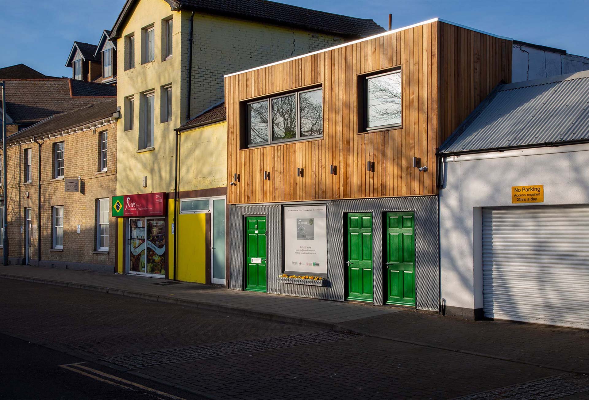 This contemporary office renovation is centrally located in the heart of Ipswich, Suffolk. It is the headquarters for a progressive conveyancing solicitor (KMA Solicitors). The modern architecture makes a unique / vibrant (head-turning), but comfortable addition to the street.