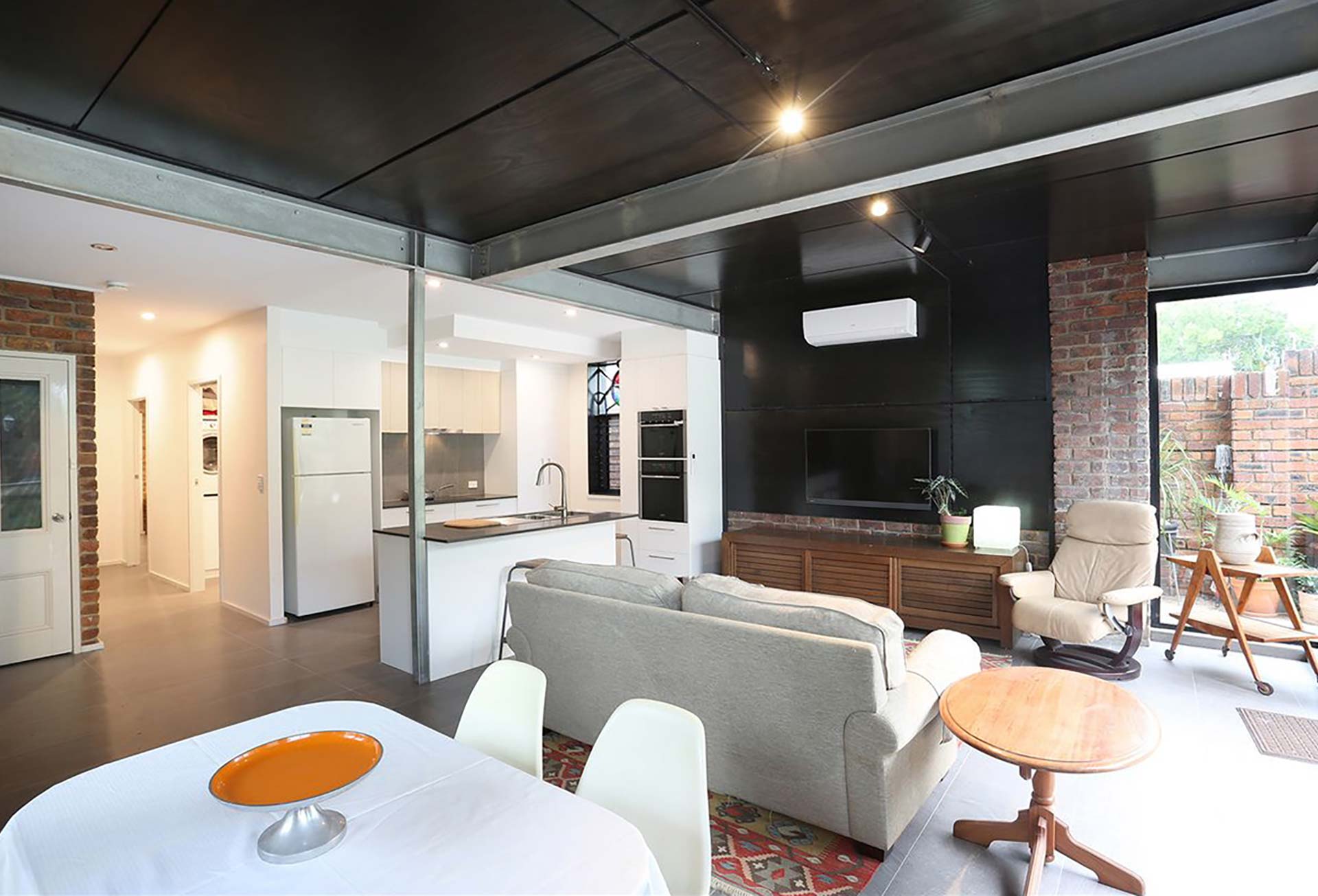 Phase one was to design the upstairs accommodation as a separate living space for the property owners and phase two was to remodel the downstairs into a self-contained suite. The end result – the creation of two distinct contemporary living spaces boasting an industrial design.